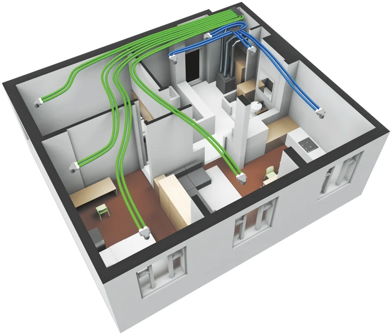 Jeśli Twój dom lub mieszkanie są już wykończone, również możesz cieszyć się korzyściami płynącymi z rekuperacji. W takiej sytuacji doskonale sprawdzi się rekuperacja ścienna, przeznaczona do pojedynczych pomieszczeń. To rozwiązanie mniej inwazyjne, ponieważ montaż wymaga jedynie wykonania otworu w ścianie zewnętrznej, bez konieczności prowadzenia kanałów wentylacyjnych.