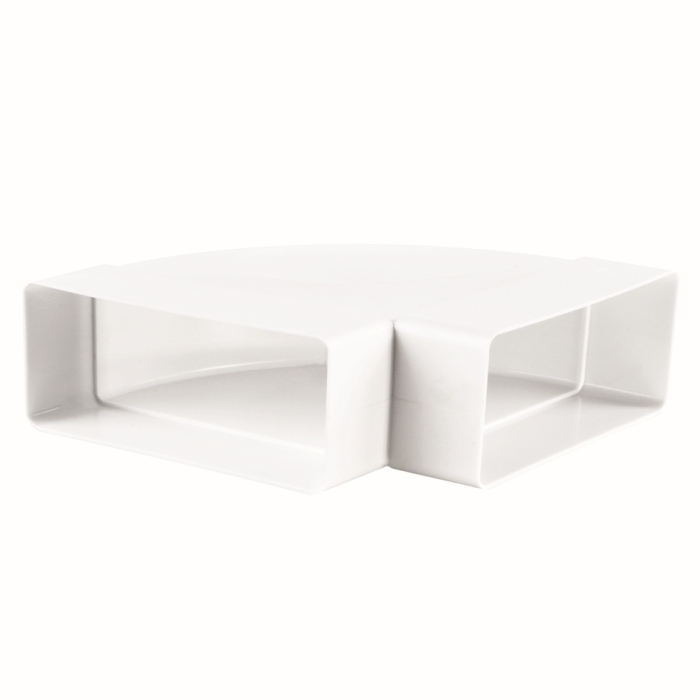 Kolano poziome umożliwiające połączenie kanałów w ułożeniu poziomym pod kątem 90 stopni. Kolano typu mufowego (kanał wchodzi do środka). Łatwy montaż bez specjalistycznych narzędzi „na wcisk”, nie wymaga spoiwa np. w postaci kleju, lekka konstrukcja, estetyczny wygląd.