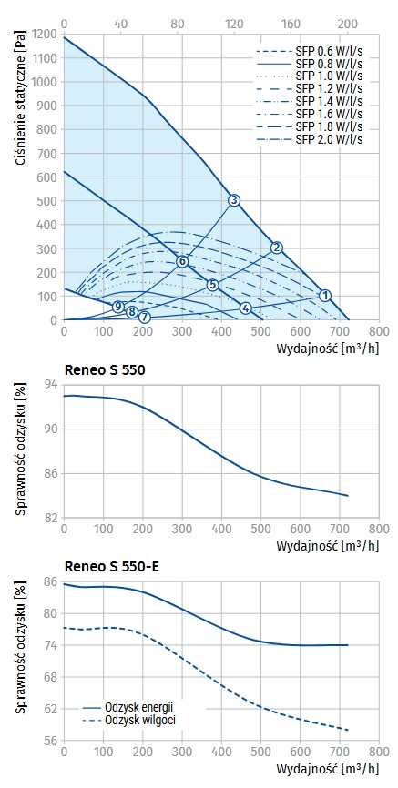 | Sprawność odzysku ciepła [%] | 93 | 85 | 93 | 85 |