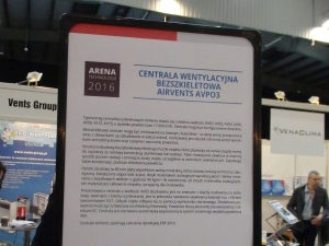 W roku bieżącym, oprócz podstawowej oferty i nowości na stoisku głównym zaprezentowaliśmy na targowej ARENIE TECHNOLOGII nową centralę modułową serii AirVENTS - AVPO3 z terminalem VAV. Przy Arenie znajdowało się również nasze mini stoisko eksperckie.